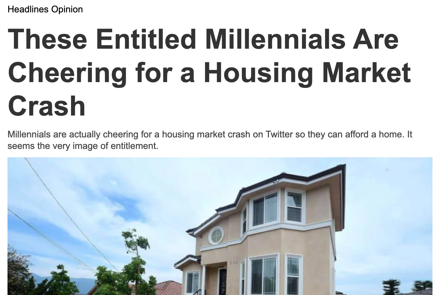 “HEY, I CAN’T BUY A HOUSE ANYWHERE. CAN WE GET BACK TO HOUSES THAT ARE 4x ONE PERSON’S SALARY AND THE MORTGAGE IS JUST 25 YEARS?”