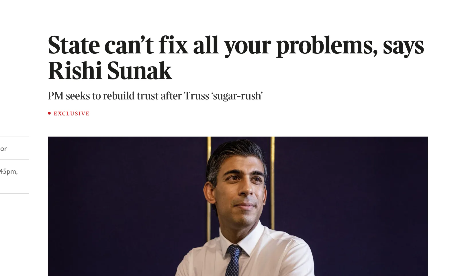 Still, sometimes in lieu of solutions, it’s nice to know there's someone’s listening, isn’t it? We don’t always need solutions, just someone to lend an ear. A bit of compassion. So Reader, it was warming to read our newest (unelected) Prime Minister, Rishi Sunak, offering these words of comfort on the front page of Saturday’s Times: