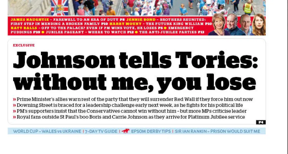 Shortly after, the I Weekend reported that Team Johnson had warned the rest of the party that - without him - they will lose the next General Election; to which the only reasonable response in this most highly regarded of intellectual realms is "Hahahahhahahah ahahhahaha hahhahaha are you fucking joking m8?"
