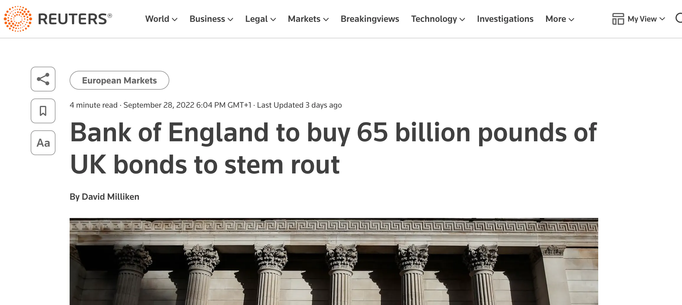 Well, now m8. I know how much you all hate a Captain Hindsight and all, but indulge me: Maybe if the Government hadn't spent the last ten days trying to answer the question "What would happen if we wrapped the Culture War around Western Capitalism?", maaaaaybe, just MAYBE, they could've asked the Bank of England for the sixty-five BILLION it ended up having to use to buy back British debt?