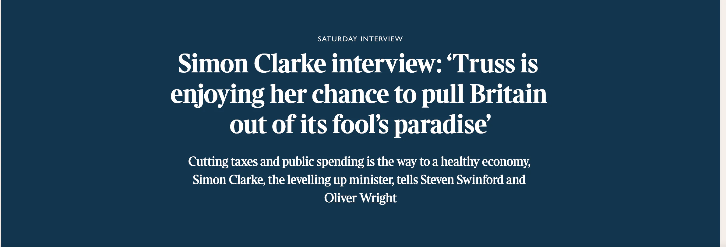 Anyway, let's get back to Simon Clarke though, who (according to The Times) warned "Britain has lived in a fool’s paradise for too long and must reduce public spending to help fund taxcuts.".