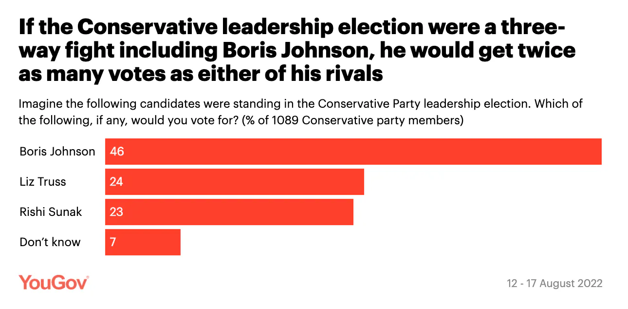 So why aren’t they taking it seriously? Well.. I mean, as for right now… doesn’t take a genius to work out why Truss and Sunak specifically aren’t spending much time on it. They can only handle one simple task at any one time and right now that’s wooing the Members. Ah yes, those precious members. Good to know the priorities of the nation are being assessed by the great minds of the country's conservative clubs, who - by the way - still want Boris Johnson to stay on as PM. By a margin of two to one. TWO TO ONE. Difficult to work out quite what that says about conservatives' claim to Fiscal Responsibility or indeed about their understanding of Britain's impending financial doom. The same guy whose inability to implement a meaningful price cap, and whose ideological opposition to nationalising energy firms, who promised cheaper energy bills but forced the hikes - THAT GUY. That guy who caused all this - AND WHO IS CURRENTLY ON HIS SECOND HOLIDAY IN 4 WEEKS WHILE ROME BURNS - is polling as their preferred candidate. Fuck me gently. And it's not even that surprising. As a Home Counties white guy who's rubbed shoulders with some of these people, I can absolutely imagine them swilling their brandy at the bar, frothing their support in Johnson's ear, blasting how he's their caretaker-of-choice, while the rest of us opt instead for 'take care x'.