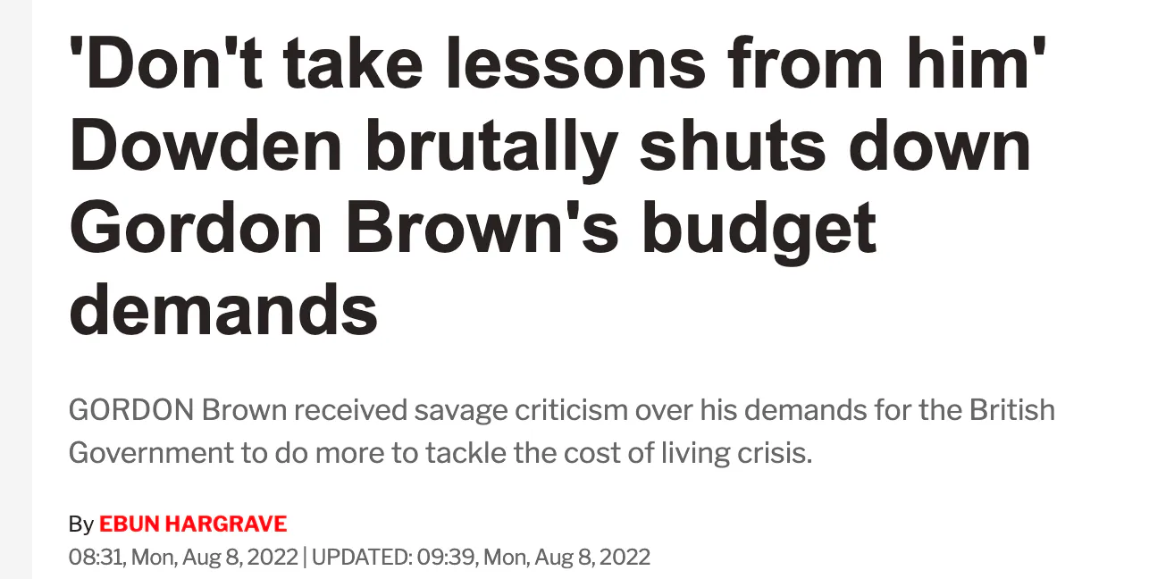Whoever wins the leadership (obvs probs Truss) will ‘win’ a murderous shit-show. It has the potential to be the biggest economic meltdown for a hundred years. Looking back on this race will read more like a Shakespearian tragedy about ambition and humility than anything resembling Hope & Change. Or for those partial to metaphor: Truss is a contestant on Blockbusters but in each of the five rounds, she has to surrender another piece of her dignity, another chunk of her principles, sacrifice and savage a few more of her working relationships, and after five rounds of gruelling - at times humiliating - tests of her suitability, she finally wins a second-hand, clapped out Fiesta.