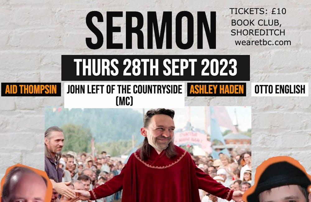 Otto English (Byline TV, Byline Times), Ashley Haden (Edinburgh Fringe, 21 Soho), Aid Thompsin and John Left of the Countryside are all descending on The Book Club in Shoreditch for a night of culty madness. Expect psalms, readings, standup and a live edition of the AT // OD podcast.